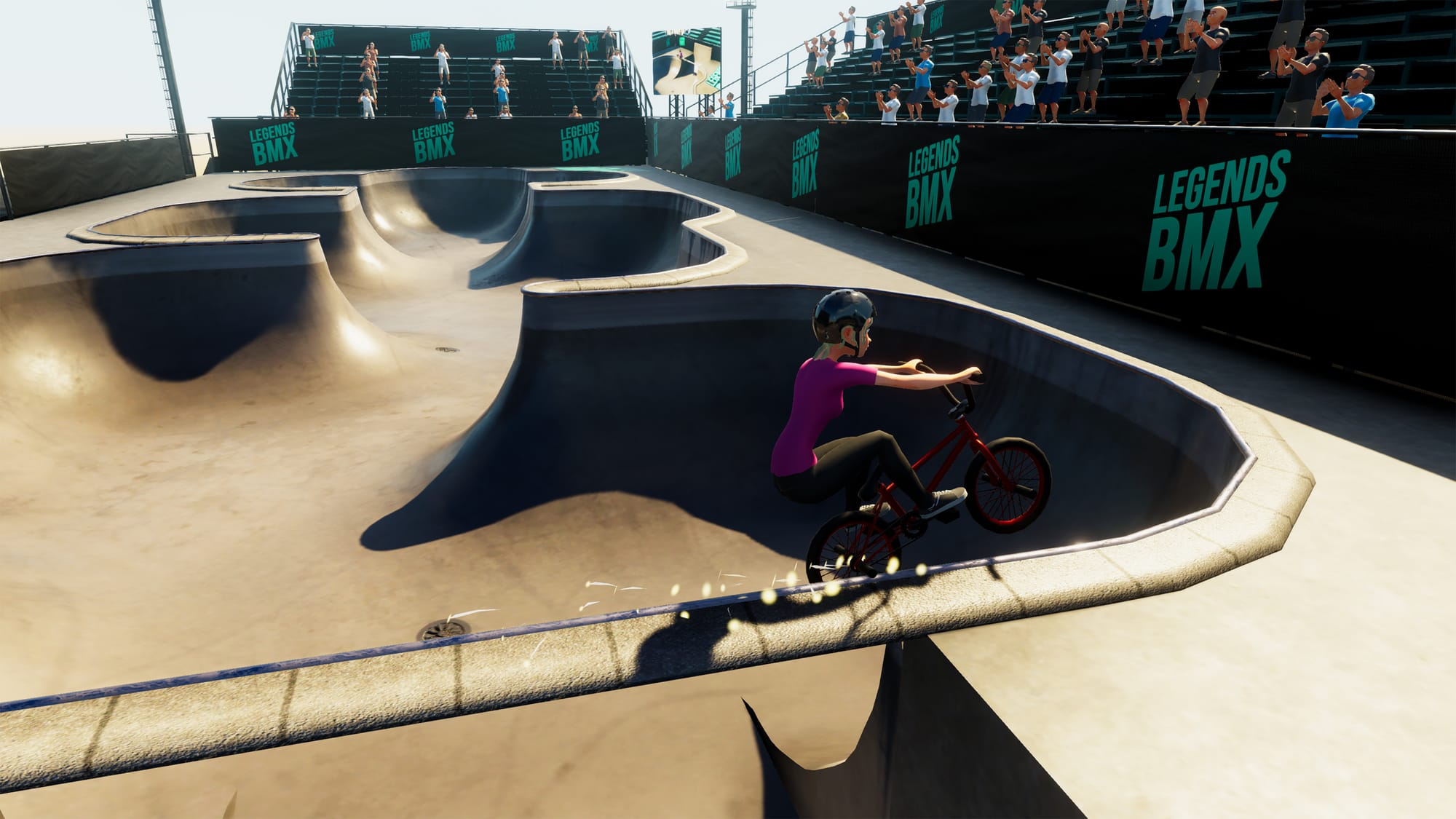 Viel Abwechslung ist bei Legends BMX nicht geboten. Die Arenen unterscheiden sich nur optisch, genauso wie die unterschiedlichen Räder, die auch erst mit Spielfortschritt zugänglich werden.
